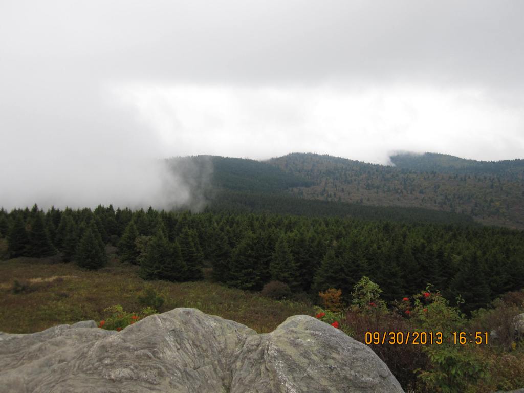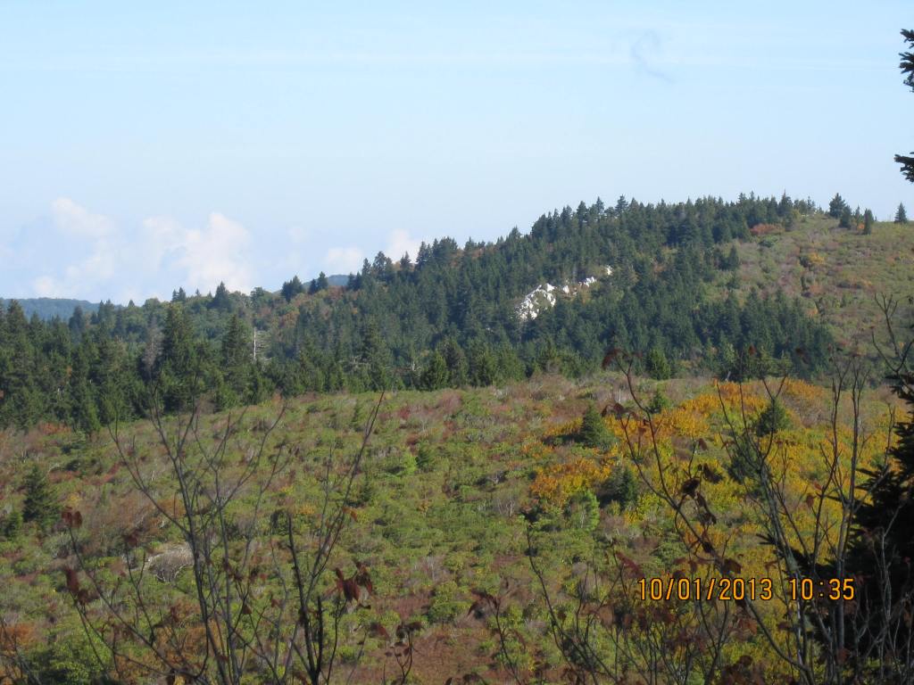 The fifth day, I finished the section to CDB (should have taken a picture there), and then turned back eastward up the slope toward Shining Rock. I camped that night at a small turnout on the trail (9.8 miles).
