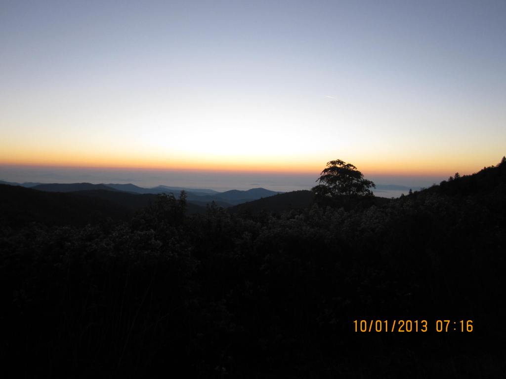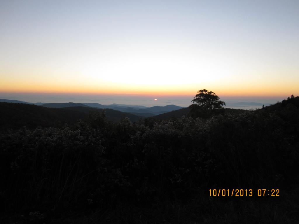 The third day was a tough climb up to Silvermine Bald (5978 ft) from the campsite at Pilot Mountain(4598), down and a loooonnngg up. I finished the day hiking over Black Balsam and Tennent Mountain, and then collapsed in the clearing next to the Ivestor Gap road (8.1 miles). The end of the day was cloudy, but I was rewarded the next morning with a great sunrise.