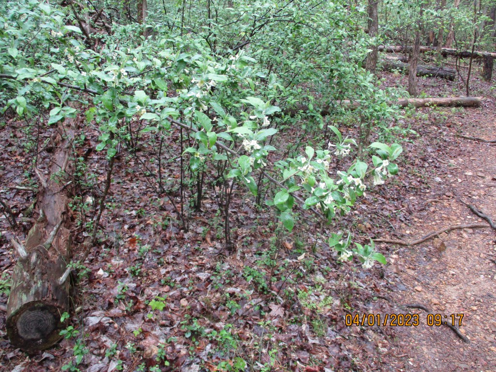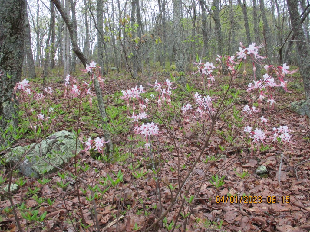 Took a 3.9 mile walk in Crowder’s Mountain State Park. Hiked from the park office to just past the Pinnacle and back. A bit of rain sprinkling down at the start. Then as I got near the Pinnacle the real rain started, and it looked quite stormy. I decided not to go to the top; the Pinnacle is a lightning rod.