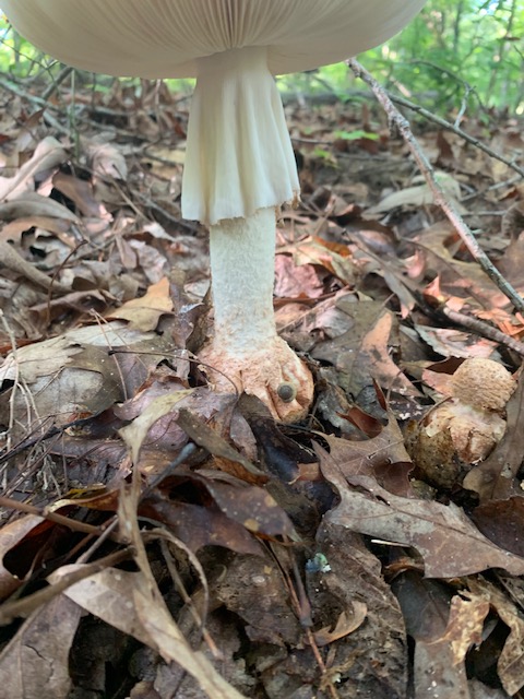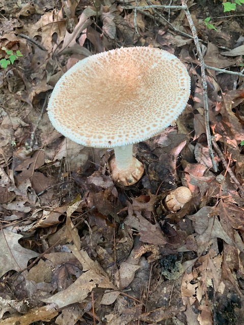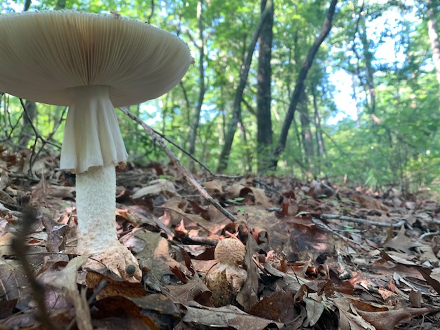 Along the next bit of trail, I found a mushroom and used an app on my phone to identify it as a “Blusher”; a genus of Amanita A. rubescens. The app said it was edible, but I didn’t try it. (think of the people who ate these first: a) Hey, Bill died right after eating that, b) John saw god for a week after eating that, c) Henry survived.) I also saw a small box turtle the edge of the trail.