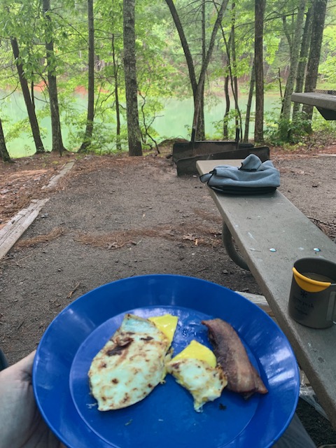 Everything was pretty wet when I got there and I got a good rain two nights, but I found leftover firewood someone left in another campsite and used my Boy Scout skills (not fire water, but fire-starters) to have a campfire.